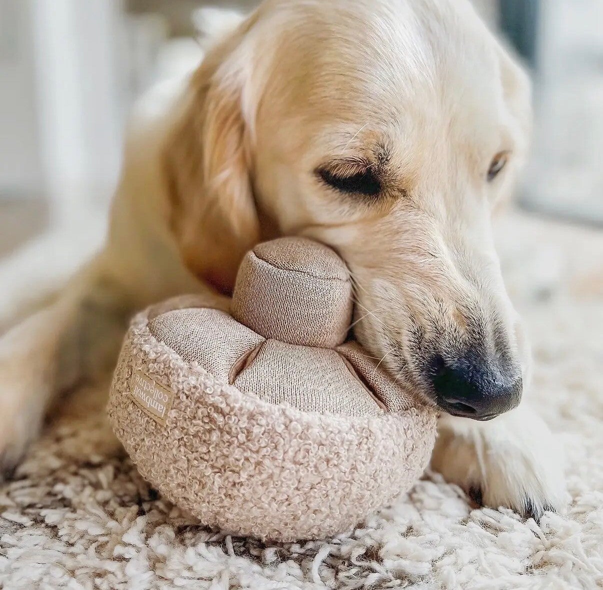 Für den Schnüffelpilz Guu von Lambwolf Collective muss dein Hund nicht erst den Wald durchstöbern – dieser Pilz weckt den Entdeckergeist sofort. Im weichen Pilzboden sind mehrere kleine Verstecke eingearbeitet, in denen sich Leckerlis platzieren lassen. So wird das Schnüffeln besonders spannend und sorgt für langanhaltende Beschäftigung. 🤍