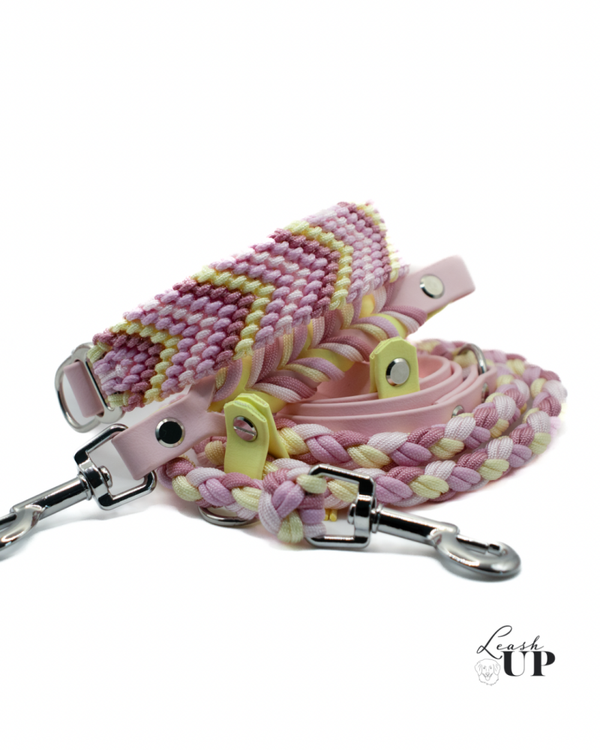 Dieses Set verführt mit weichen, frühlingshaften Nuancen, die sofort gute Laune verbreiten. Bestehend aus einem Halsband Friendship und einer BiothanexParacord Leine.